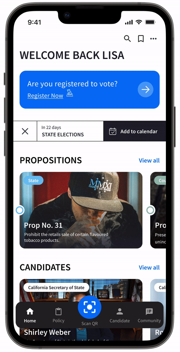 QR Code scanning on the ballot enables users to view detailed information about each proposition.